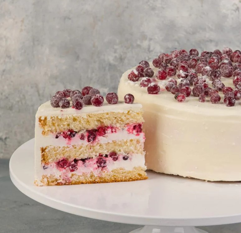 Шаг 10. Когда торт остынет, достаньте его из формы и смажьте сметанным кремом по всей поверхности. Декорируйте ягодами или орехами по желанию.