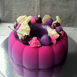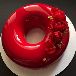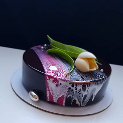 зеркальной глазурью (белой, шоколадной, с эффектом золота, мрамора или серебра);