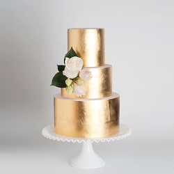 Вы можете заказать классические цветовые решения десерта: торт на свадьбу с золотом будет отражать ценность праздника и совместной жизни, а классический бело золотой торт на свадьбу добавит нежности и изыска застолью и задаст настроение и тематику праздника.