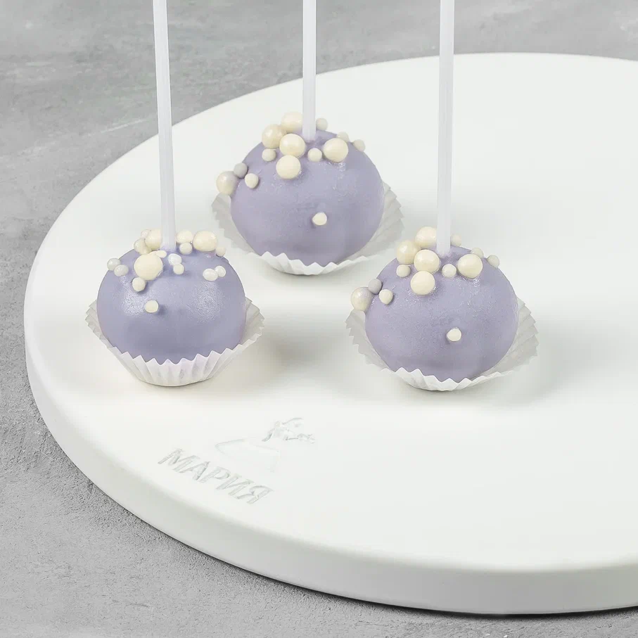 Сочный, воздушный, тающий во рту шоколадный бисквит с трюфельной крошкой, какао высшего качества и сгущенным молоком – волшебное сочетание ингредиентов! Мини-тортику придается форма милого шарика, он поливается сиреневой глазурью из молочного шоколада, посыпается съедобными жемчужными шариками.