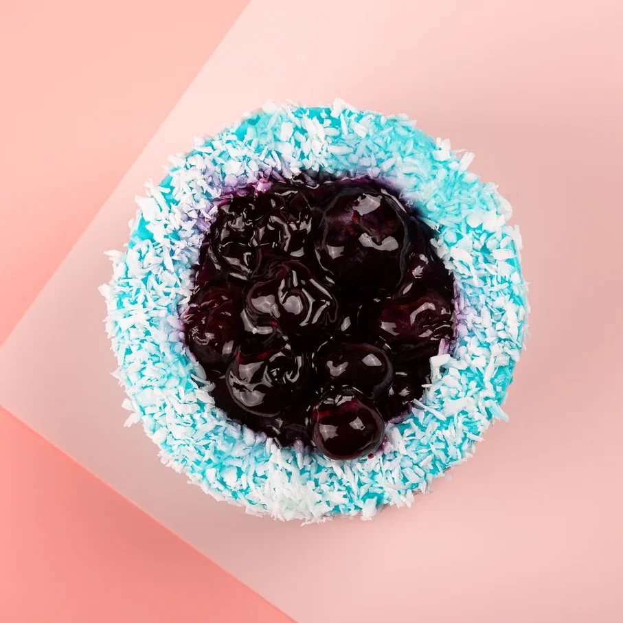 Сметана. сливки, молоко сгущенное, черника, сахар, желатин, кокосовая стружка, смесь для бисквитов, яйцо, масло растительное.