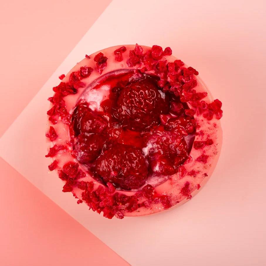 Смесь для бисквитов, яйцо, масло растительное, сметана, сливки, молоко сгущенное, малина, сахар, желатин, малина сублимированная