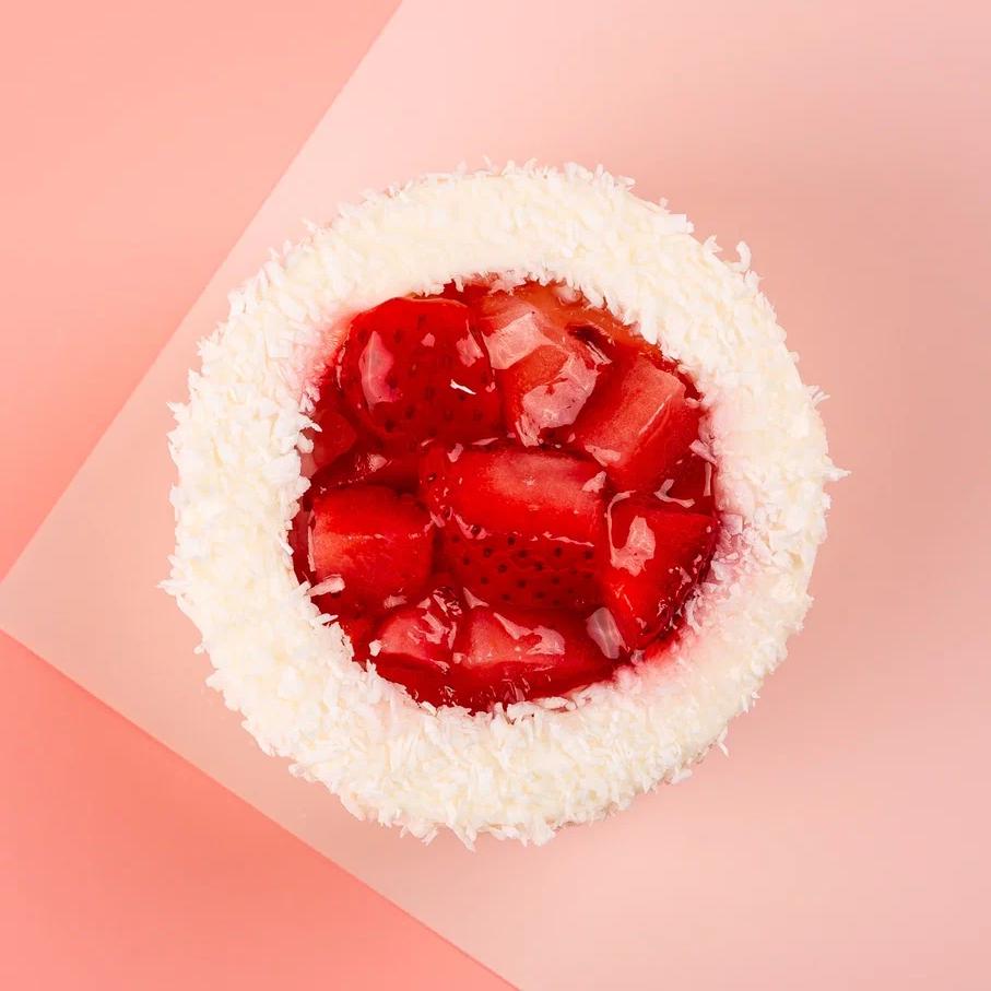 Смесь для бисквитов, яйцо, масло растительное, сметана. сливки, молоко сгущенное, клубника, сахар, желатин, кокосовая стружка.