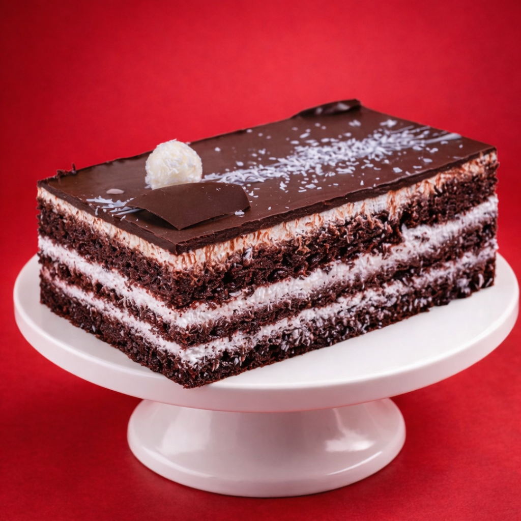 Мука, какао порошок, яйцо, сахар, масло растительное, масло, разрыхлитель/ Сыр творожный, сливки, молоко, сахарная пудра, кокосовая стружка, кокосовая конфета, шоколадный кавер, глазурьвые.
