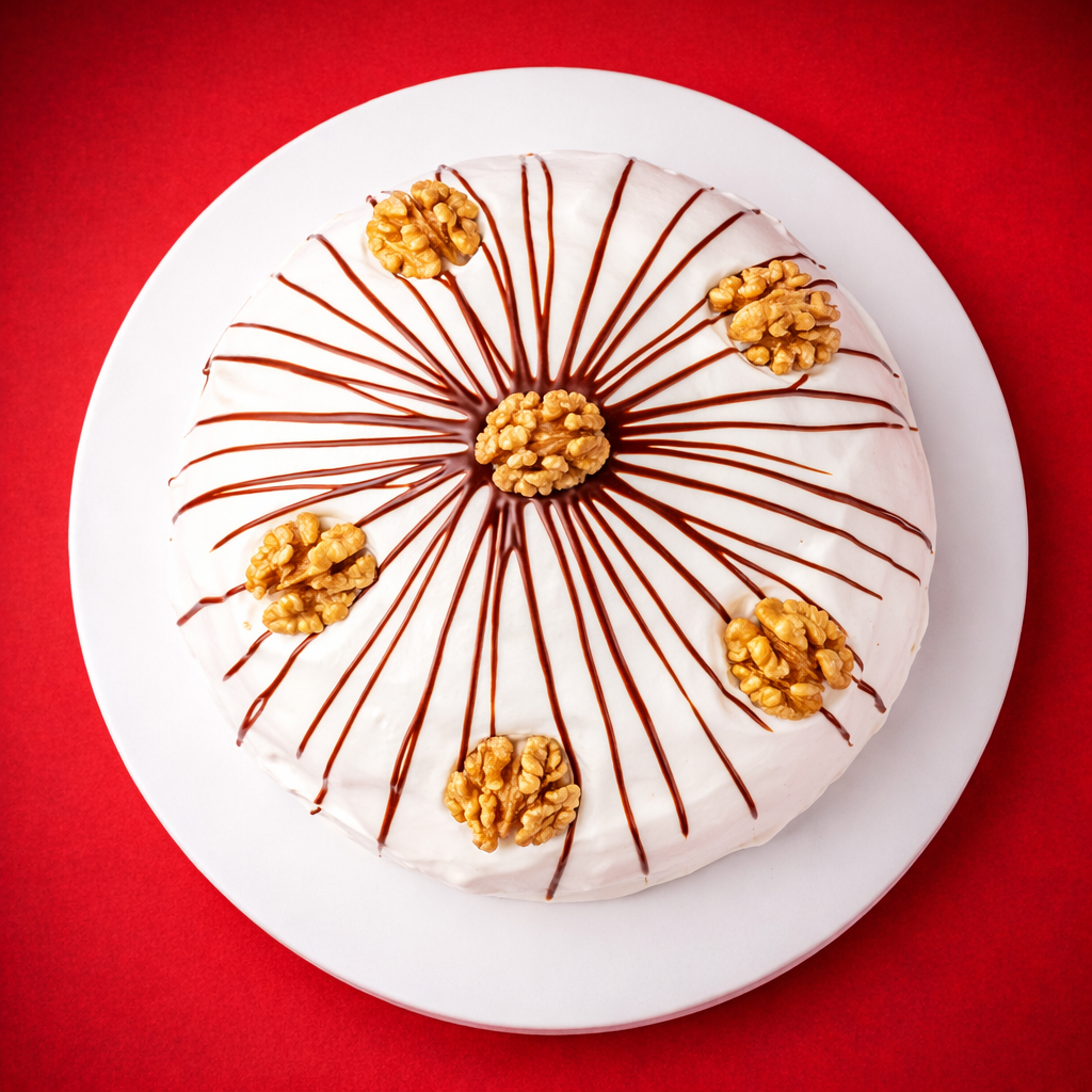 Мука в/c, сахар, соль, майонез, масло растительное, сода пищевая, яйцо 1 категории, сметана 20%, ананасы консервированные, сгущенное молоко, очищенный грецкий орех, шоколадный гель.