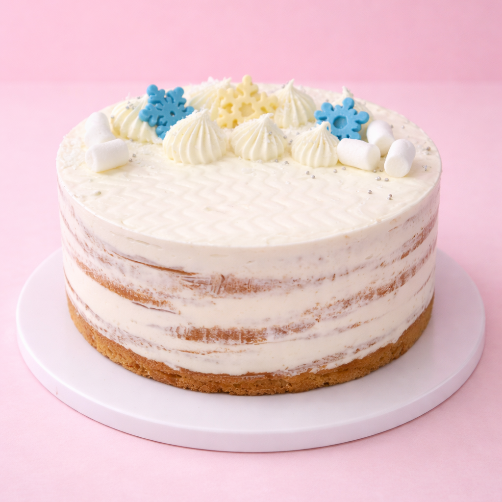 Мука в/с, сахар, яйцо 1С, масло сливочное 82%, молоко сгущенное, сливки 33%, ванилин, крахмал, кокосовая стружка, шоколад, маршмеллоу, золотая посыпка, крошка лавандовая.