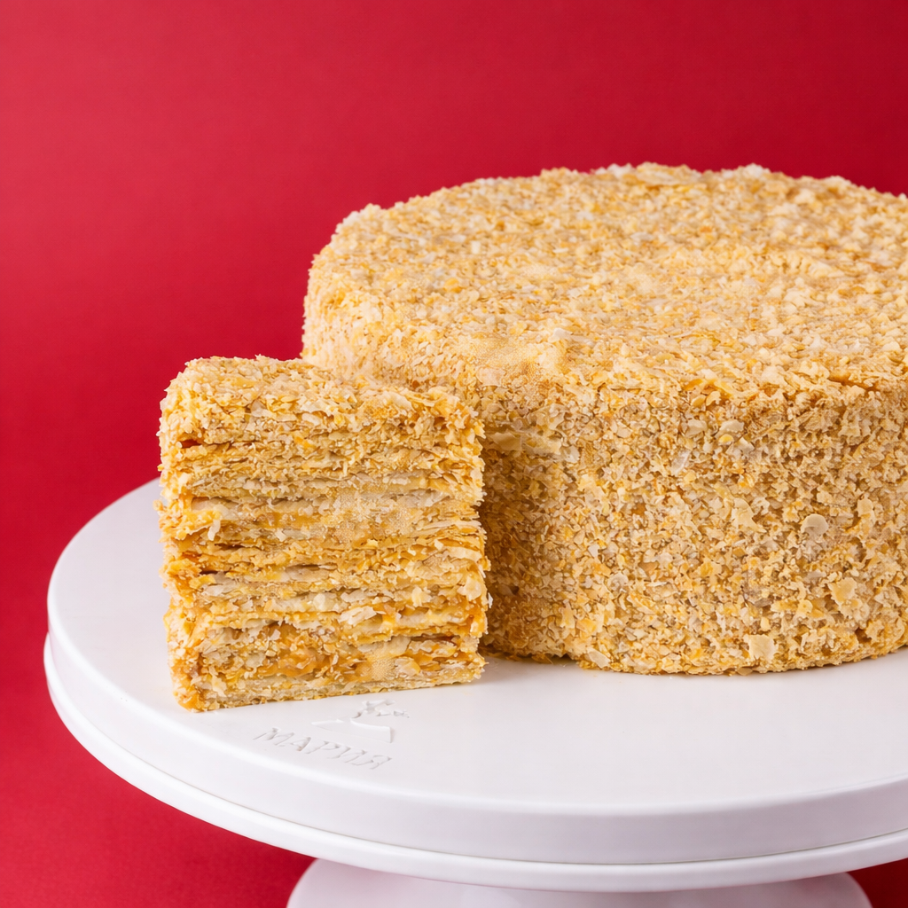 Этот вкусный торт мы делаем по старинному рецепту, проверенному десятилетиями и любимому всеми без исключения. Меняется мир, мода, технологии, но любовь к этому торту остается такой же сильной. Причем любят его и взрослые, и дети, и капризные подростки. У всех поднимается настроение, когда на столе оказывается именно этот торт. С ним становится уютнее и теплее, он и правда творит чудеса. В чем секрет? Наверное, каждый, кто любит этот торт со сгущенкой, ответит по-своему. Мы же стараемся создавать его точь-в-точь таким, каким к нему многие привыкли.
