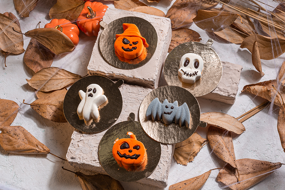 классические муссовые пирожные в этот день превратятся в тыкву, привидения, тыквы-морды, мышей и даже скелеты;