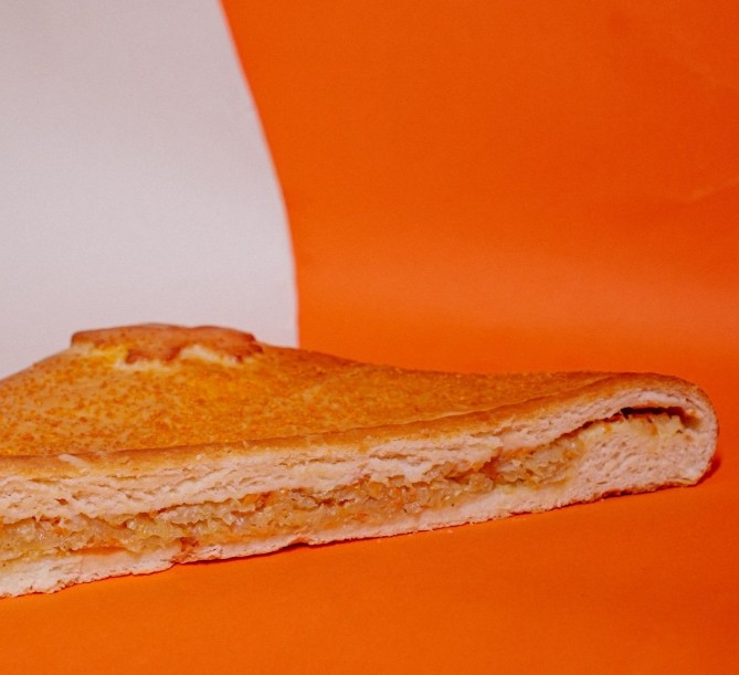 Пирог "Море рыбы" 0,850 кгАроматный пирог из слоеного воздушного бездрожжевого теста и большим количеством начинки из свежей горбуши с луком – настоящий вкус детства!
