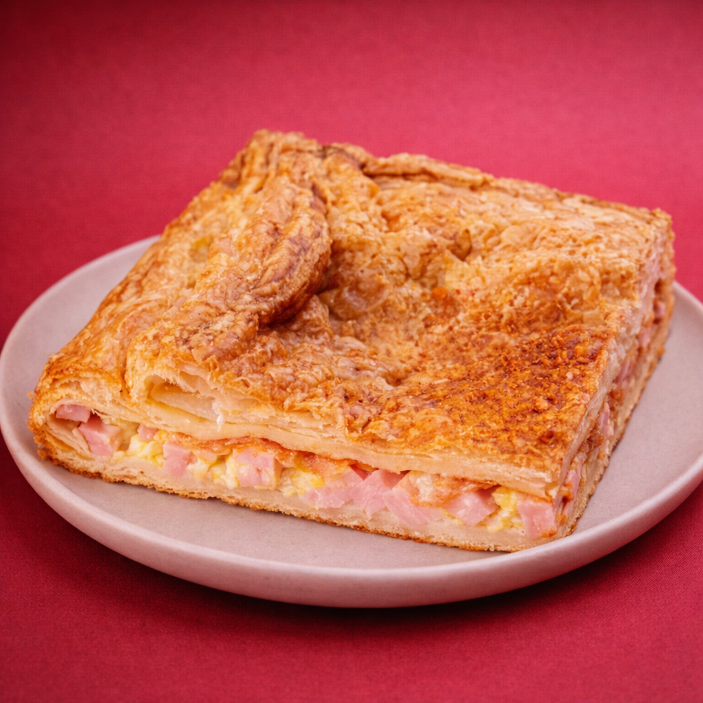Мука в/с, маргарин, соль, яйцо 1с, ветчина, сыр Гауда, пепперони, огурцы маринованные, майонез, панировочные сухари, соль морская.